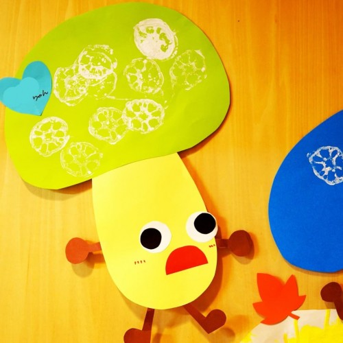 レンコンの野菜スタンプを使ったきのこの製作です!季節の食材に親しみが持てそうな、食育にピッタリの製作ですね!