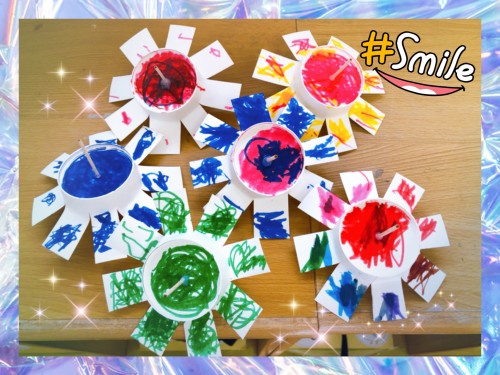 紙コップを均等に8等分に切り、サイペンで色付けしました。