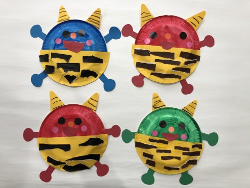 壁面飾りにしましたが、帯をつけてお面にしてもいいと思います。