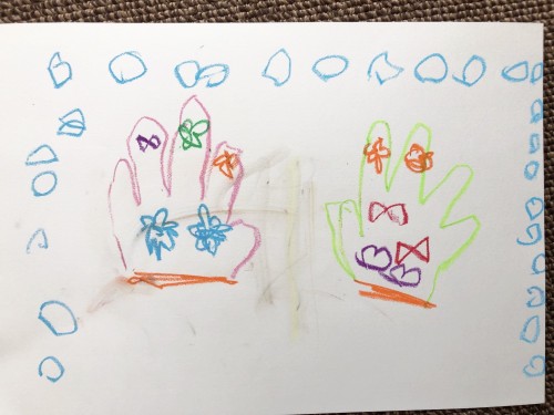 クレヨンをいろんな角度で動かさなくてはいけないのでけっこう難しいですが、ちょっとくらいズレても可愛い手袋になります。